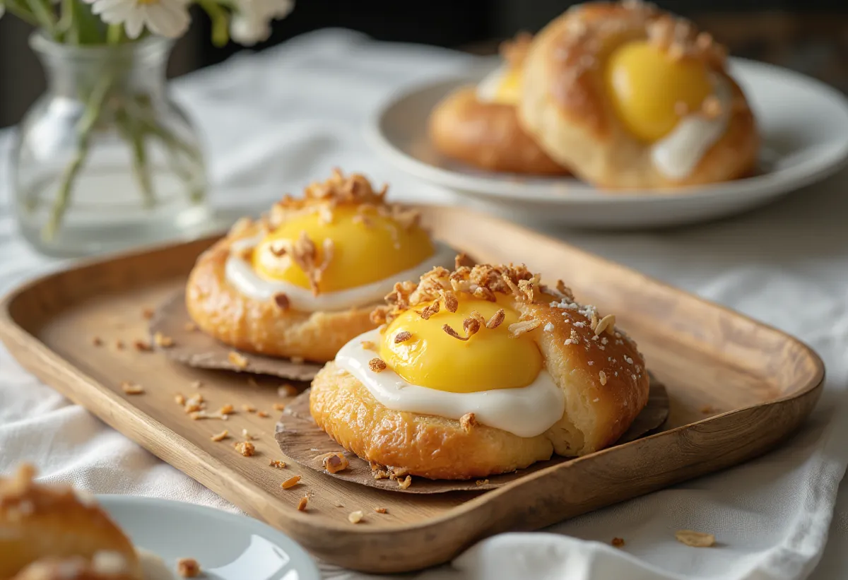 - Çukuru çok fazla doldurursanız, mayalanma ve pişirme sırasında hamur kremayı dışarı iter. Daha az koyun ama yuvayı iyice derinleştirin.