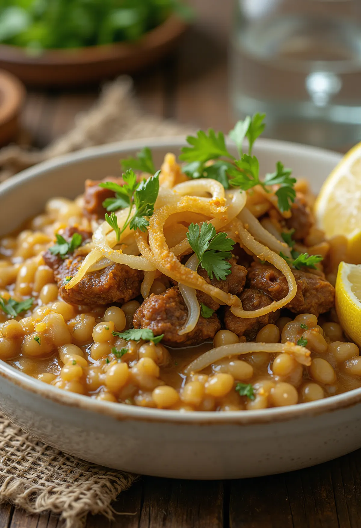 Kızarmış soğanlı haleem