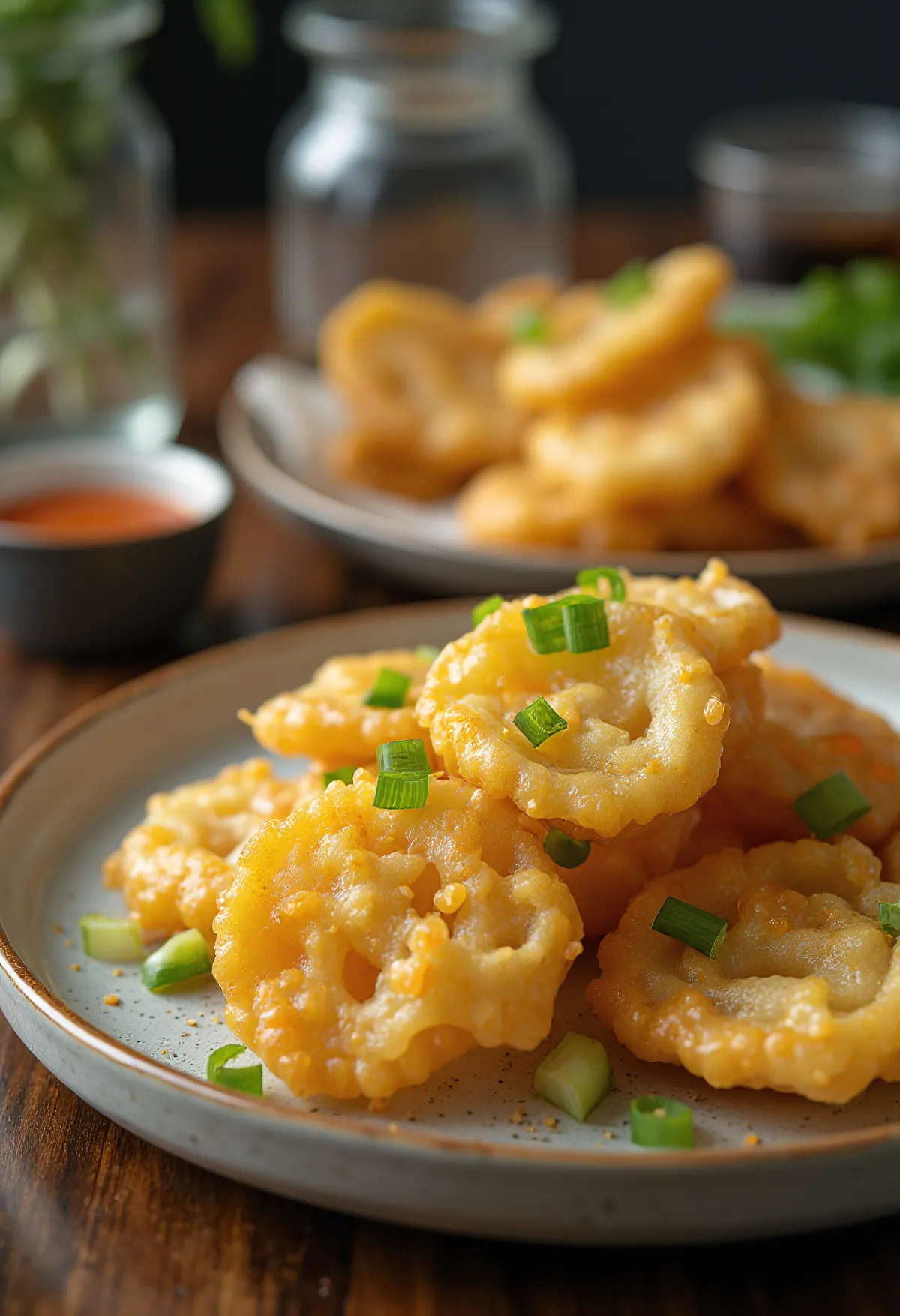 Kızartmadan hemen önce hamuru karıştırın: Una buzlu suyu ekleyin ve bir çubuk veya çatalla gevşek bir şekilde karıştırın. Topaklı kalması sorun değil!